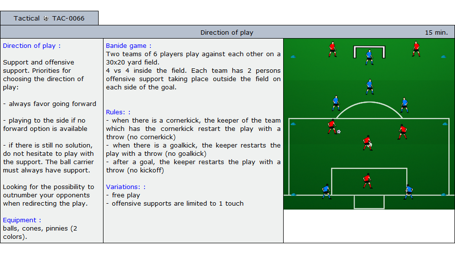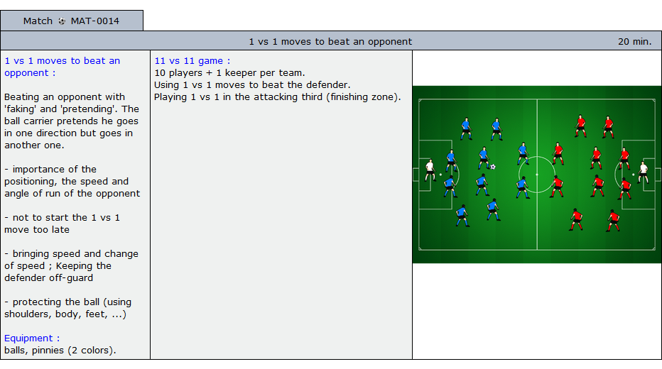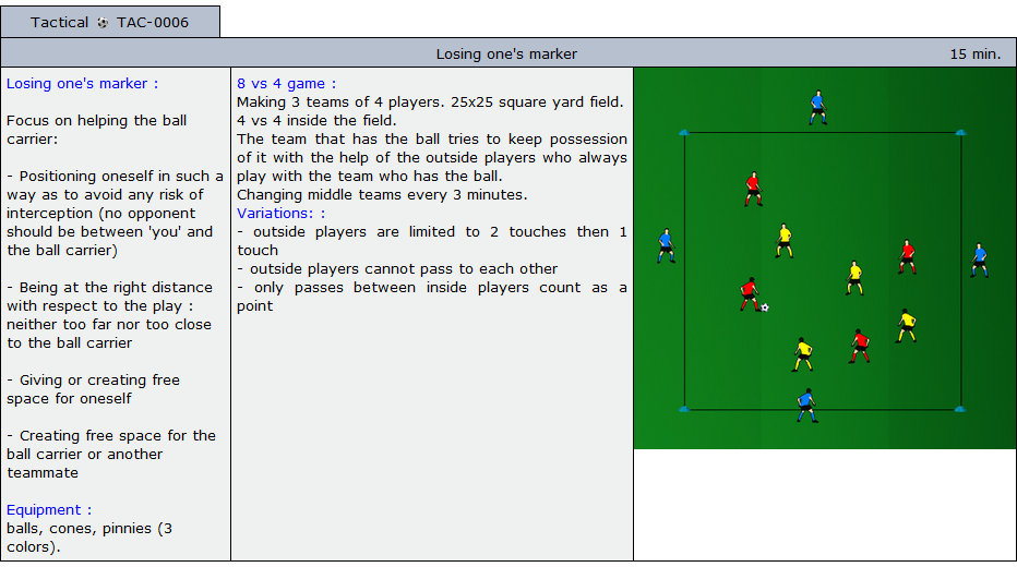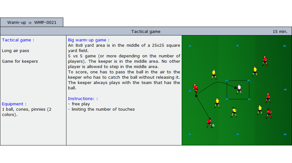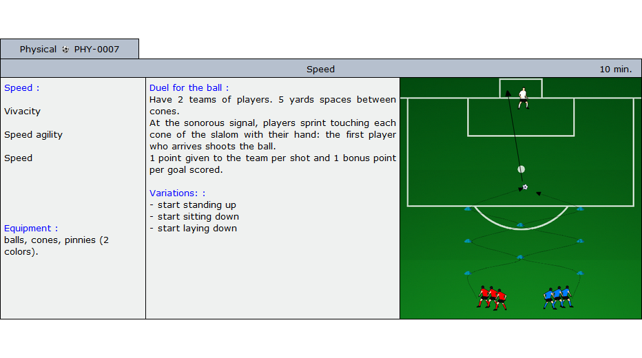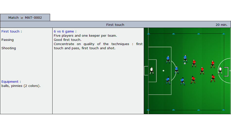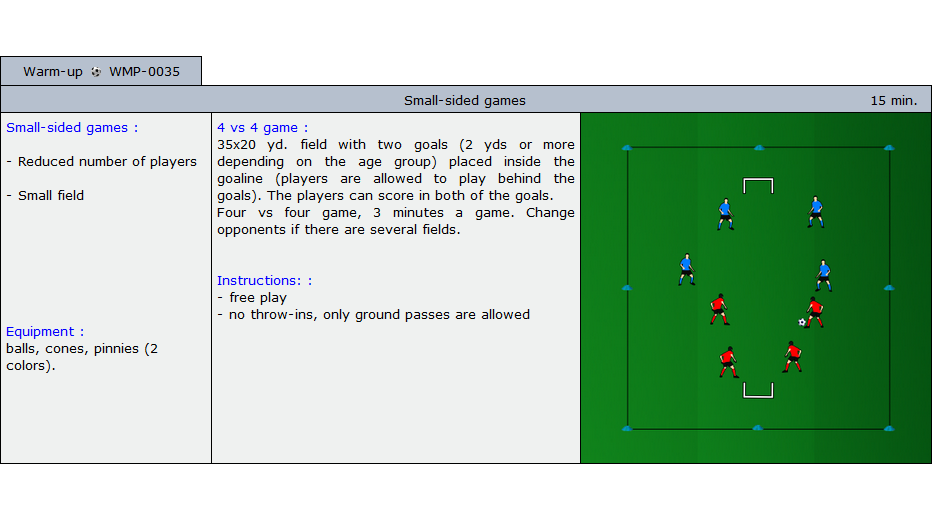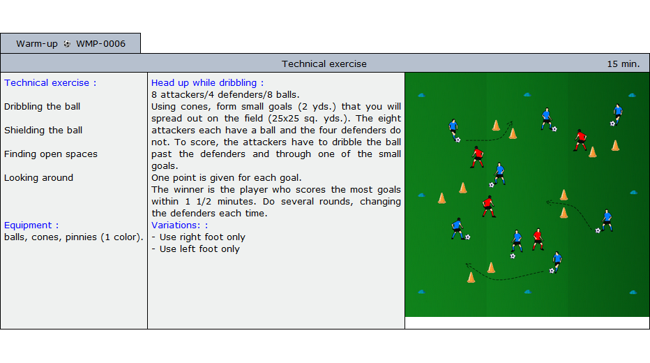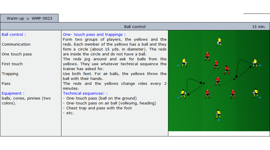 Drills and games samples available in Soccer-Trainer Online : warm-up, physical, technical, tactical exercises and match for all age groups.