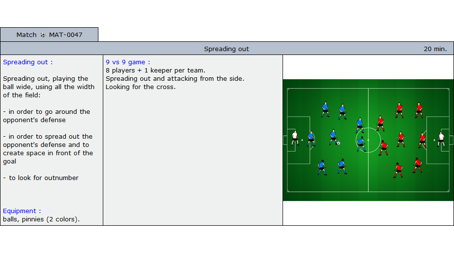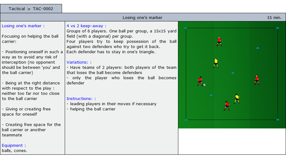 Drills and games samples available in Soccer-Trainer Online : warm-up, physical, technical, tactical exercises and match for all age groups.